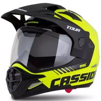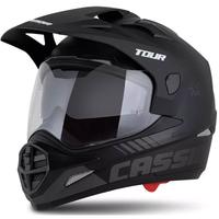 Мотоциклетната каска Cassida Tour 2.0 Dual е с поликарбонатна черупка, готови за употреба стойки за монтиране на слушалки с комуникатор и задна каишка за очила MX.