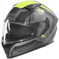 Мотоциклетната каска NOX N402 с поликарбонатна черупка предлага интегриран слънчев козир, както и система за безопасност за бързо сваляне на бузите.